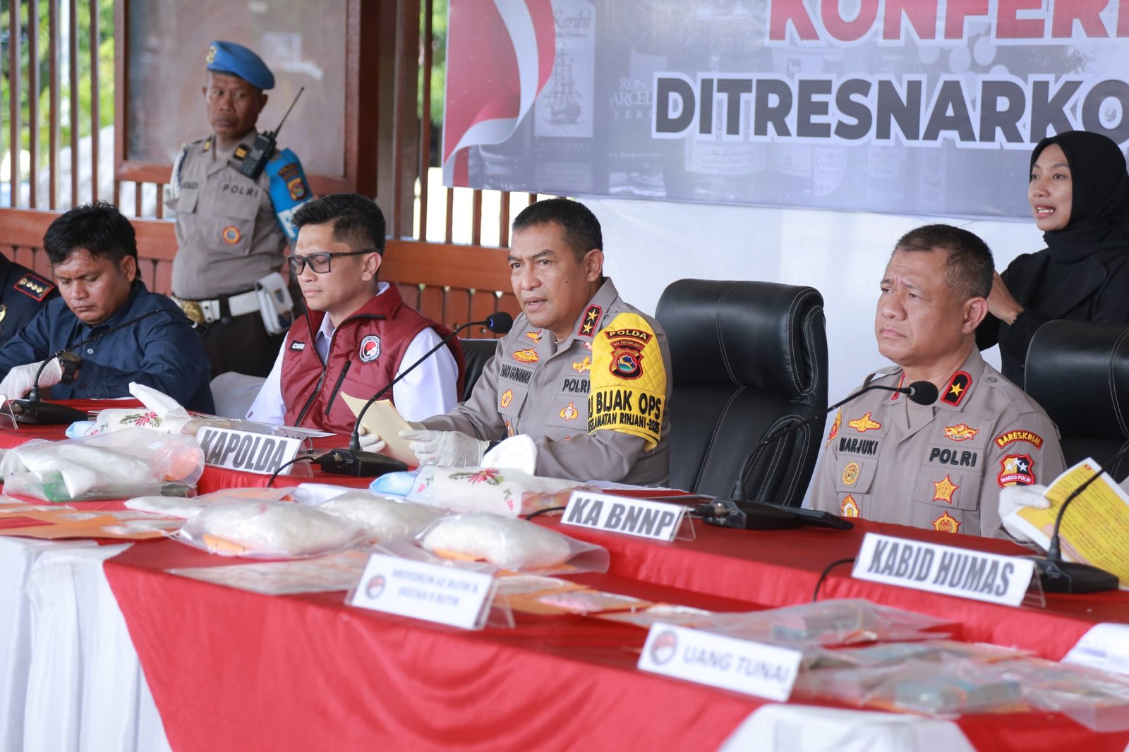 Kapolda NTB Irjen Pol. Hadi Gunawan, S.H., S.I.K. saat kinferensi pers pengungkapan kasus narkoba periode bulan Januari 2025, Selasa (25/2/2025), di Tribun Lapangan Bara Dhaksa menegaskan jika pemberantasan narkoba sejalan dengan Asta Cita (delapan misi) Presiden Prabowo, khususnya poin ke-7 tentang penguatan hukum dan pemberantasan narkoba.