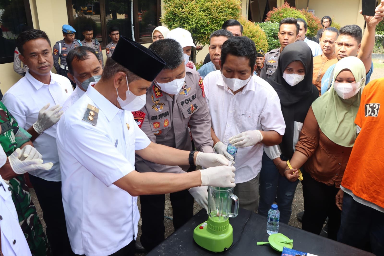 Kegiatan pemusnahan pada tingkat penyidikan ini dipimpin langsung oleh Kapolres Bima, AKBP Eko Sutomo, S.I.K, M.I.K, yang turut dihadiri Wakil Bupati Bima, dr H. Irfan Zubaidi, Danramil Woha, Kapten CBA Iwan Susanto, SH, Ketua Pengadilan Negeri Bima, Alfian, SH, jaksa fungsional Kejari Bima, Farhan Zam Zam, SH, Pj Klinik BNNK Bima, dr Maya Patia Lestari, S.P.Si, Kepla Balai POM BimaAdjis Sanjaya, S.Si, beserta pengacara dan penasehat hukum para tersangka.