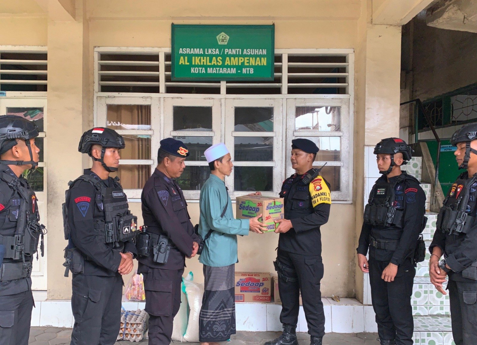 MATARAM, 20 Juni 2025 – Batalyon A Pelopor Sat Brimob Polda NTB kembali menunjukkan kepedulian sosialnya melalui kegiatan bakti sosial, kali ini dalam rangka menyambut Hari Ulang Tahun (HUT) Bhayangkara ke-79. Pada Jumat, 20 Juni 2025, personel dari Kompi 1 Brimob menyalurkan bantuan sembako ke sejumlah panti asuhan di Kota Mataram, sebuah wujud nyata semangat pengabdian kepada masyarakat.